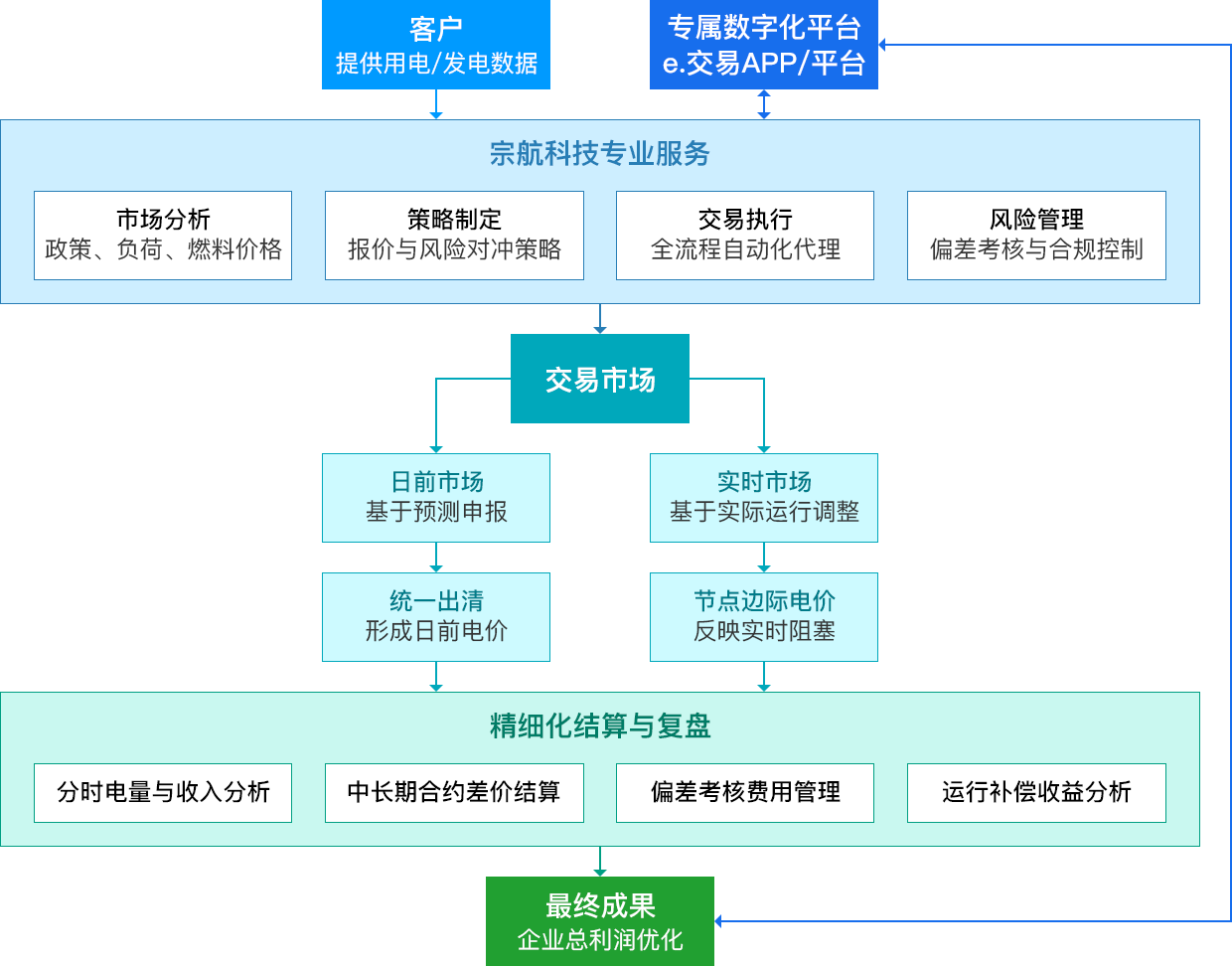 交易结束后,河南宗航科技有限公司平台自动完成包括现货能量费、合约结算、考核费用等在内的多项复杂结算,并生成清晰的利润报告。